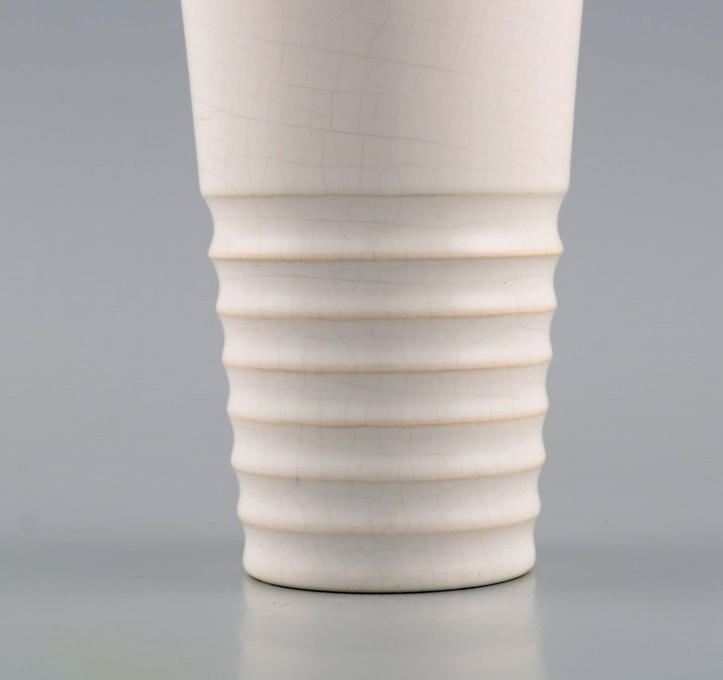 Suzanne Ramie (1905-1974) for Robj Paris. Fem unika art deco vaser i glaseret stentøj. Smuk krakeleret glasur i sand nuancer. Midt 1900-tallet.