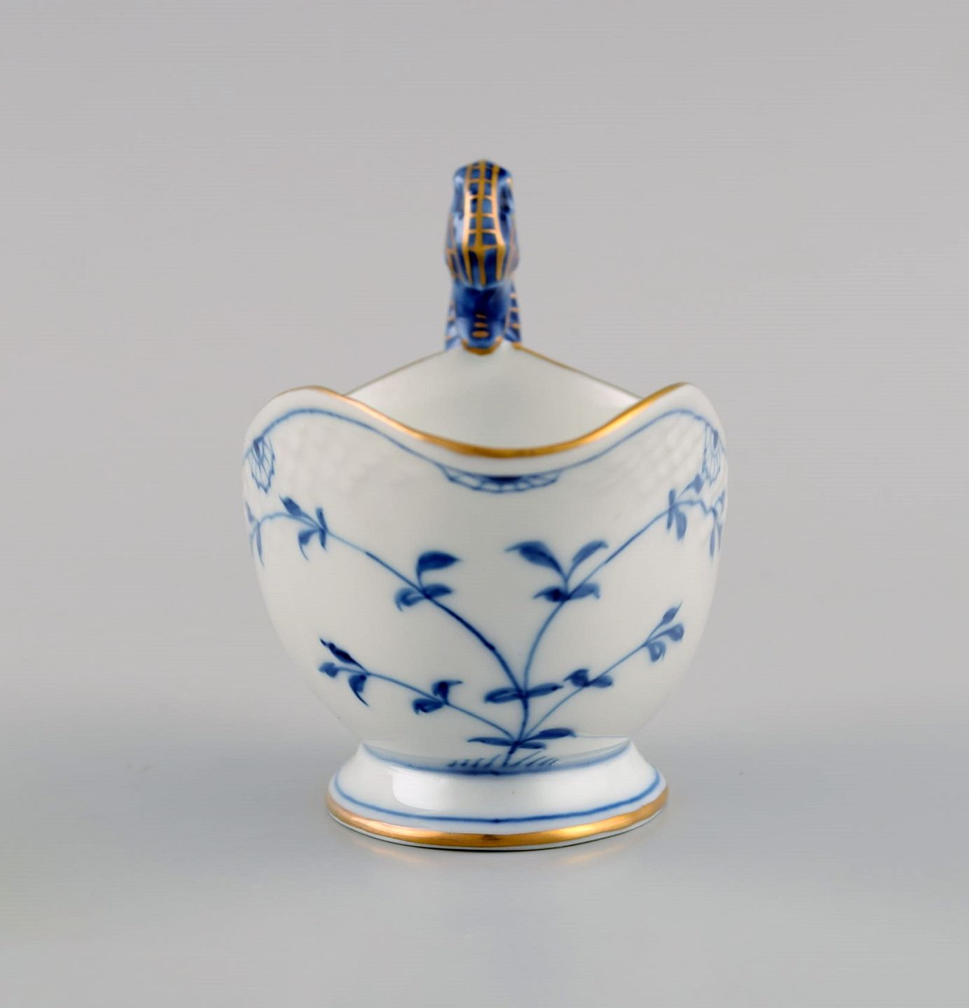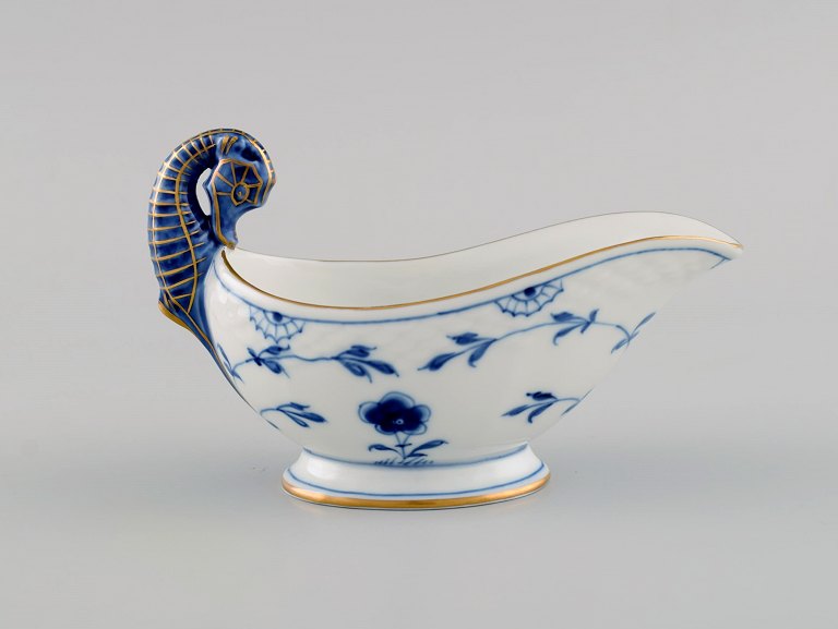 Bing & Grøndahl Musselmalet sovsekande med håndmalet gulddekoration og hank i form af søhest. Midt 1900-tallet. Måler: 14 x 8,5 cm. I flot stand. Stemplet. 1. Sortering.