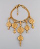 Stor vintage Yves Saint Laurent "Gold" halskæde med fem vædhæng. 1970/80'erne. Total længde: 40-50 cm. (justerbar). Kædens bredde: 5 mm. Største vedhæng diameter: 4,5 cm. I flot stand. Stemplet.