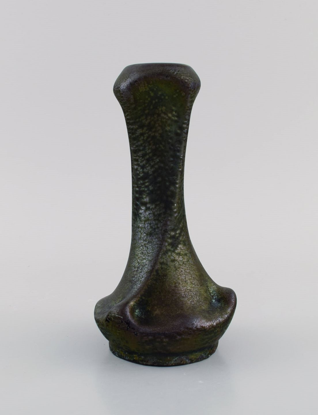 Heliosine Ware, Østrig. Vase i glaseret stentøj. Smuk spættet metallisk glasur. 1920/30'erne.