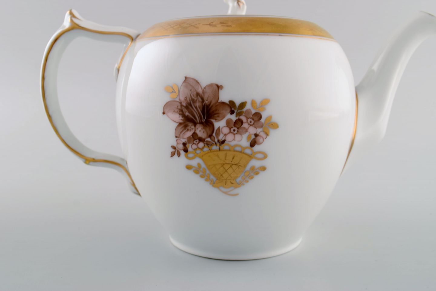 Royal Copenhagen Guldkurv tekande i porcelæn med blomster og gulddekoration. Modelnummer 595/9103. Tidligt 1900-tallet. Måler: 24 x 14,5 cm. I flot stand. Stemplet. 1. Sortering.