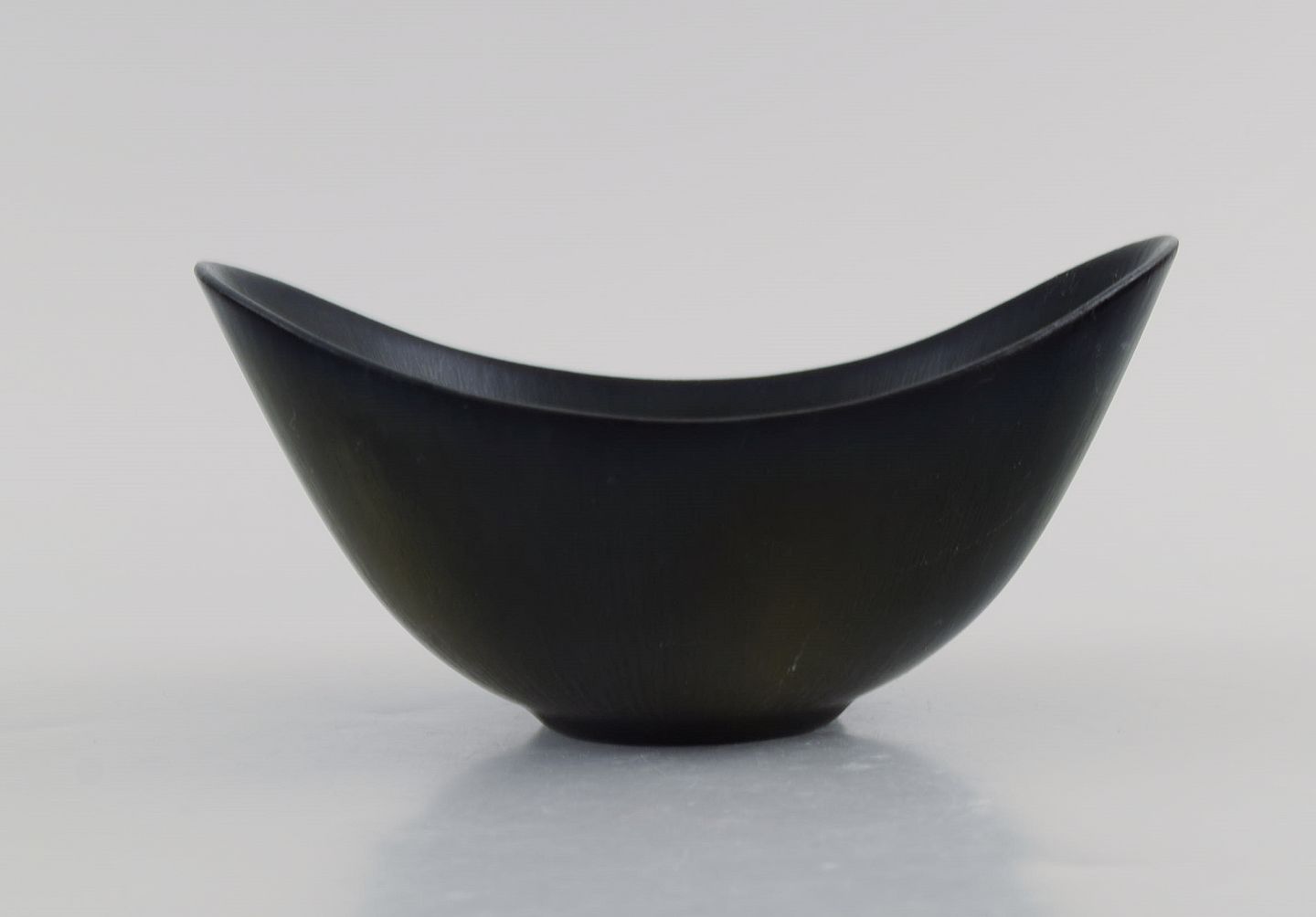 Gunnar Nylund (1904-1997) for Rörstrand. Skål i glaseret keramik. Smuk glasur i brune nuancer med grønne strjef. Midt 1900-tallet.