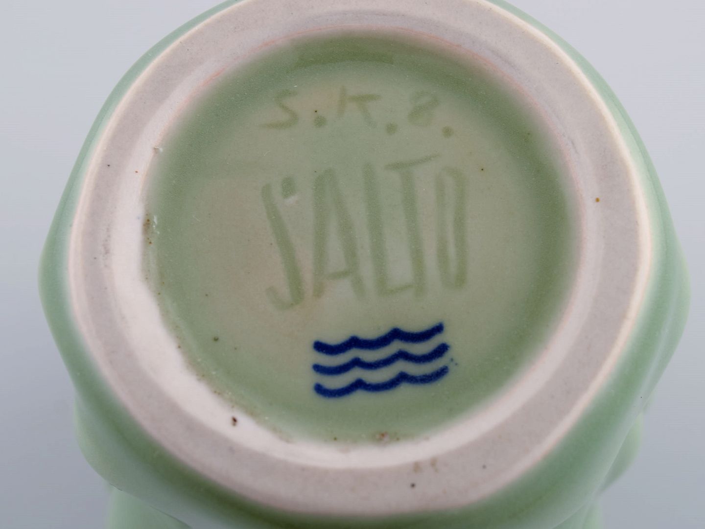 Axel Salto for Royal Copenhagen. Early vase in glazed stoneware. Budded style. Beautiful celadon glaze. 1930s / 40s. Signed Salto. Measures: 12 x 9.5 cm. In perfect condition. 1st factory quality.