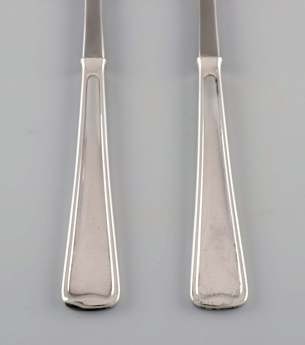 Rare Georg Jensen Koppel cutlery. Two roast forks in sterling silver and stainless steel.