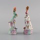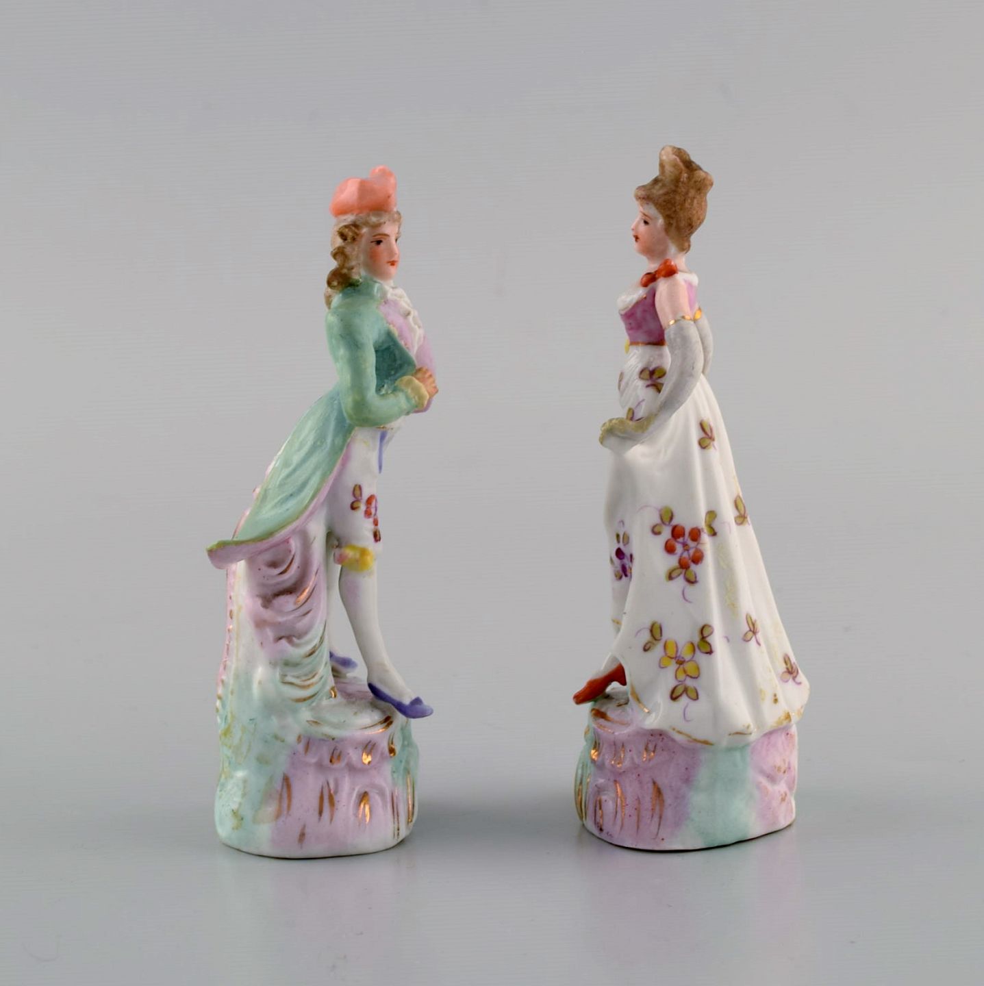 To tyske antikke porcelænsfigurer. Rokoko par. 1800-tallet. Største måler: 11 x 4,5 cm. I god stand. Minimalt skår og lille reperation. Stemplet.