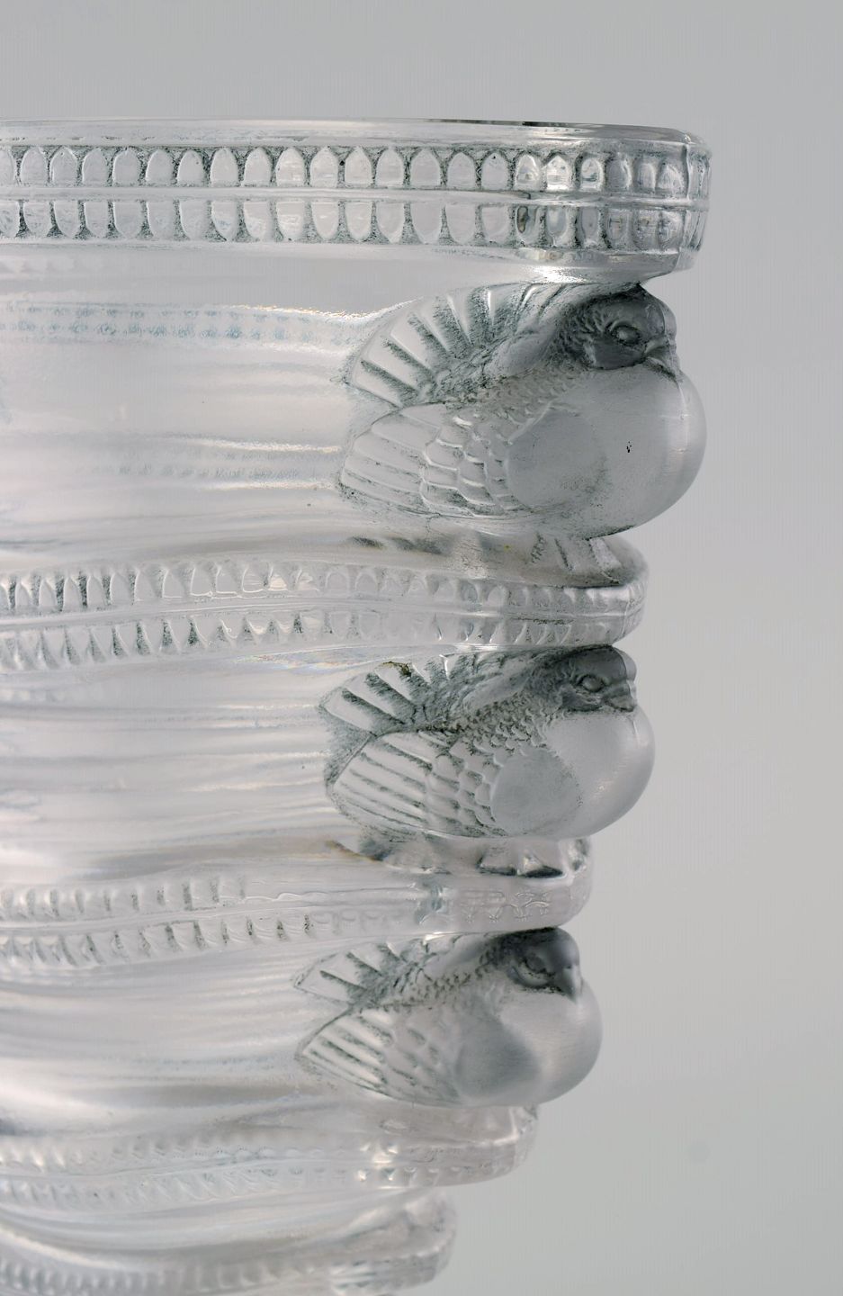 René Lalique (1860-1945), France. Early Saint-Marc art glass vase with rows of birds. 1930s. Measures: 17 x 17 x 9 cm. In excellent condition. Stamped: R. Lalique, France.
