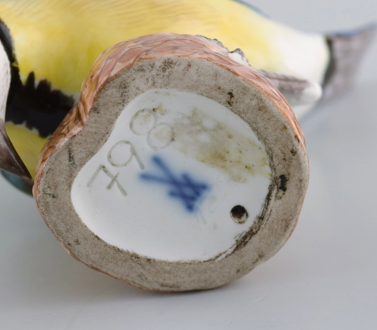 Meissen, Tyskland. Antik håndmalet porcelænsfigur. Fugl. Sent 1800-tallet. Måler: 10,5 x 8,8 cm. I flot stand. Stemplet.