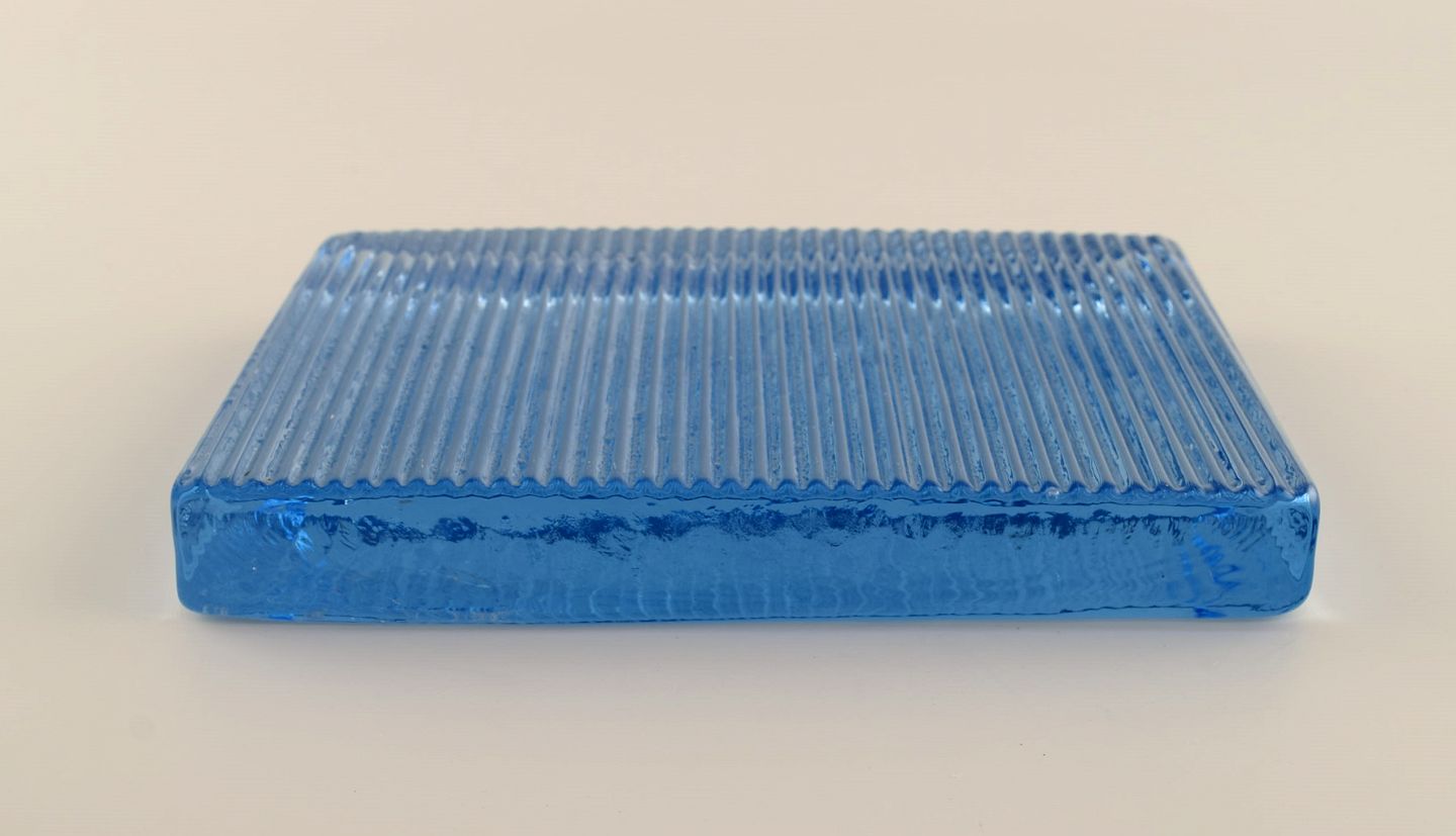 Per Lütken for Holmegaard. Four "Buffet" butter boards in light blue mouth blown art glass. 1980s. Measures: 18 x 12 x 2.5 cm. In excellent condition.