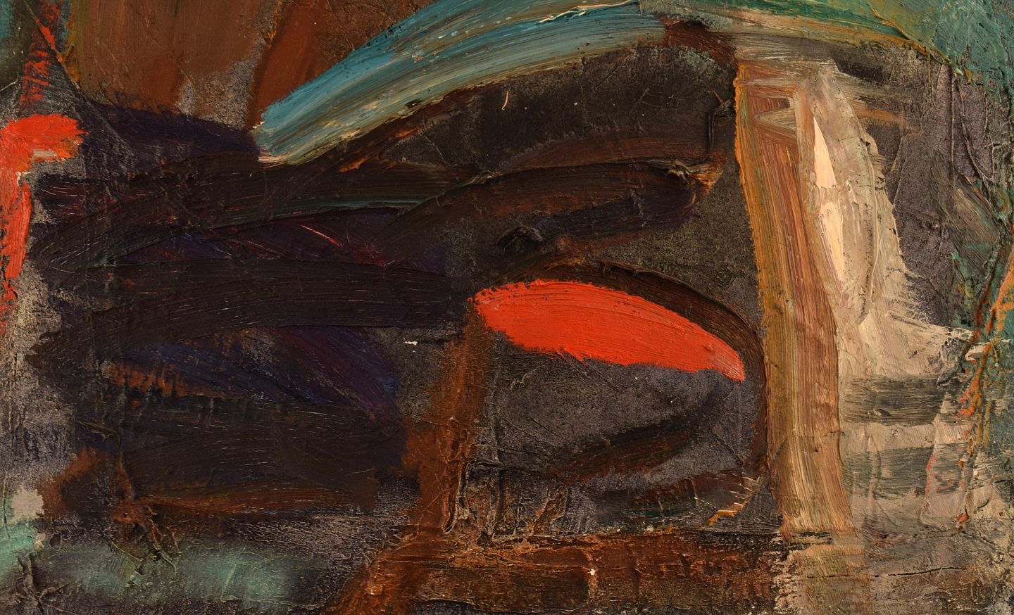 Christian Ohlsson, svensk kunstner. Olie på lærred. Abstrakt komposition. 1960'erne. Lærredet måler: 65 x 50 cm. Rammen måler: 5 mm. I flot stand. Signeret.