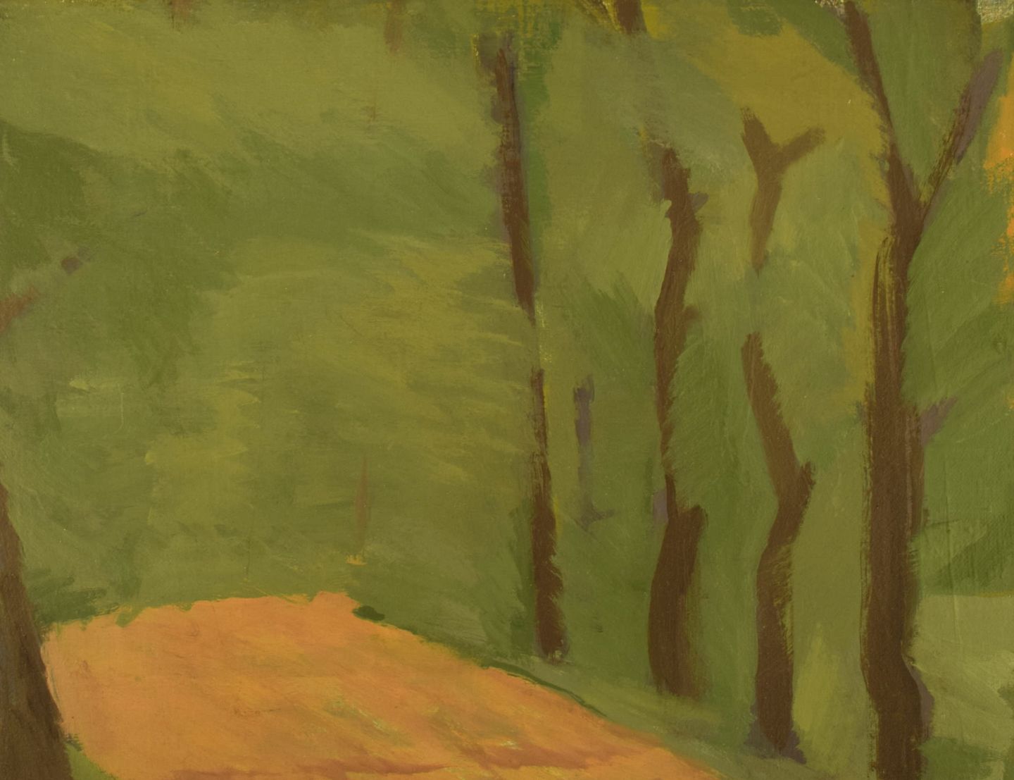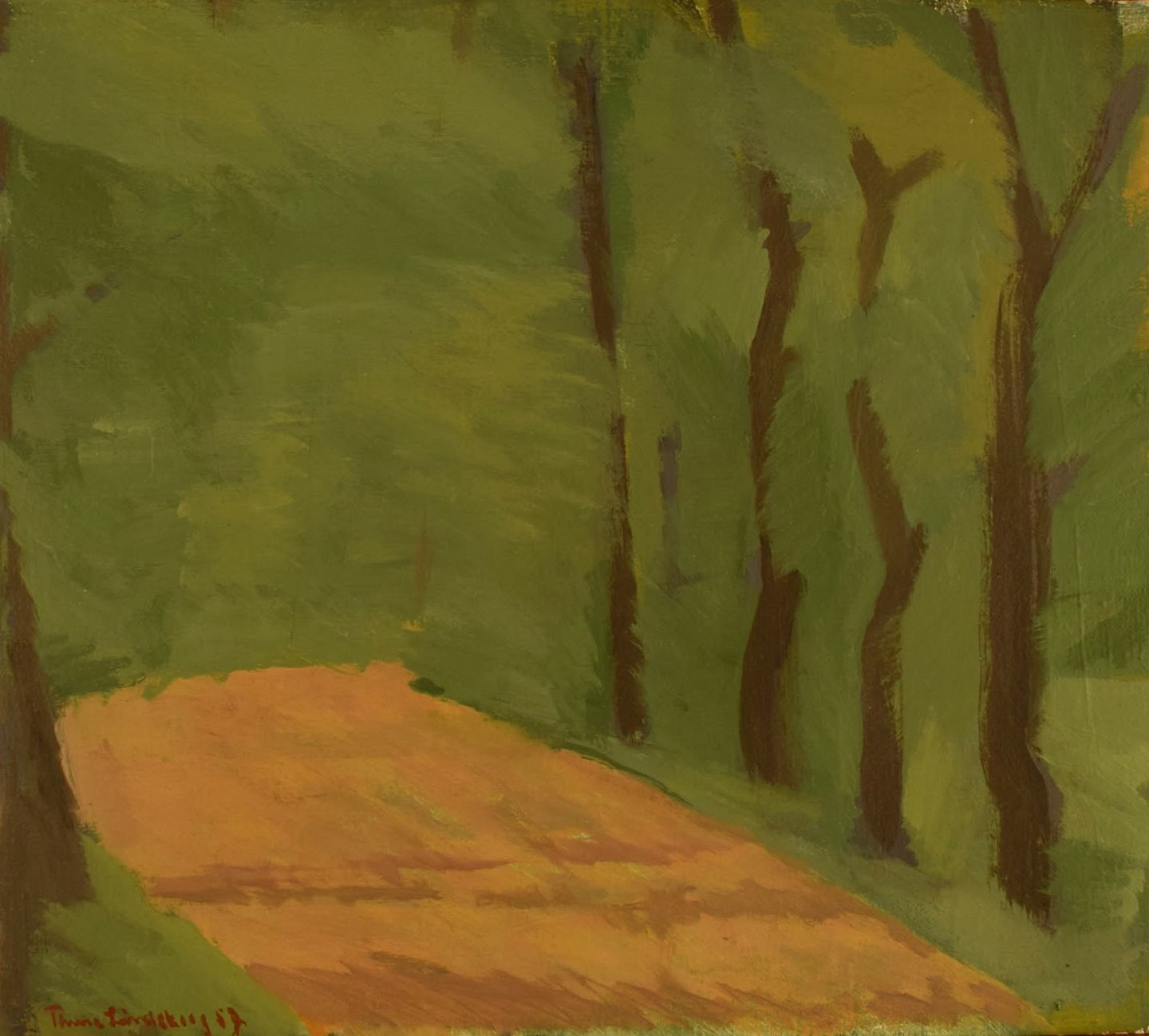 Thure Lindskog, listed Swedish artist. Oil on canvas. Modernist landscape with trees. Dated 1957. The canvas measures: 36 x 32 cm. The frame measures: 1 cm. In excellent condition. Signed and dated.