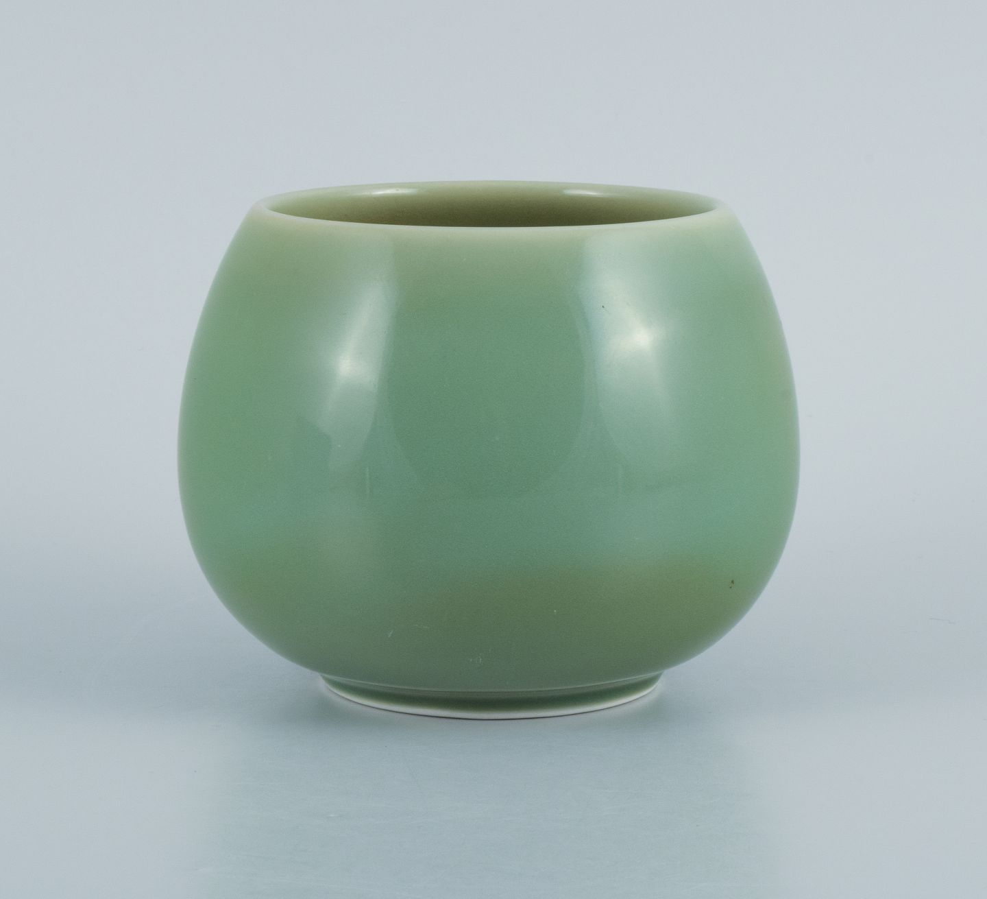 Royal Copenhagen jar in glazed stoneware. Beautiful celadon glaze. Danish design. Mid 20th century. Marked. In excellent condition. First factory quality. Measures: 14,0 x 11,0 cm.
