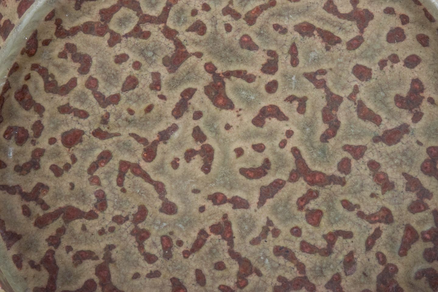 Arne Bang (1901-1983), Danmark. Lav skål med kanneleret kant i glaseret keramik. Smuk spættet glasur i lyse jord nuancer.