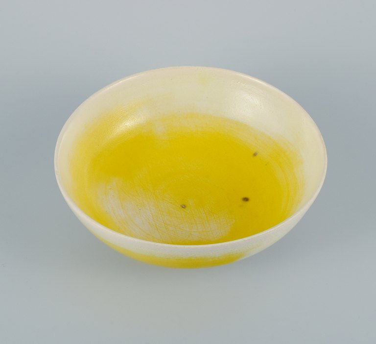 Georges Jouve (1910-1964), Frankrig. Unika skål på i glaseret stentøj i gule og cremefarvede nuancer.