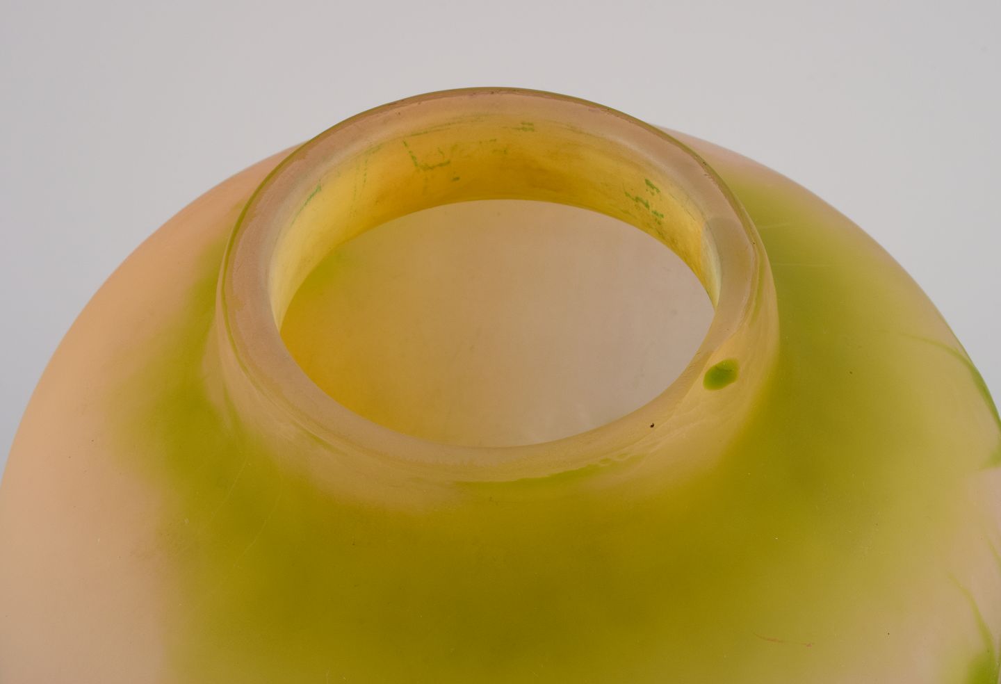 Large Émile Gallé vase in frosted art glass decorated with green thistles. Approx. 1915. In excellent condition. Signed. Dimensions: H 26.5 x D 19.0 cm.