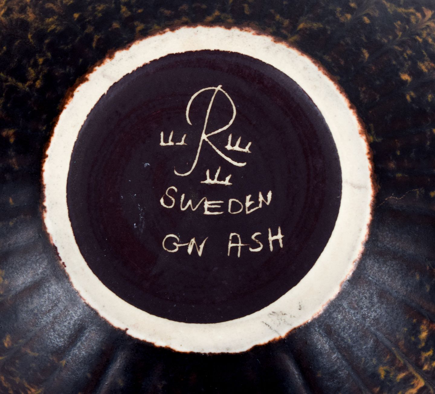 Gunnar Nylund (1904–1997) for Rörstrand. Skål i keramik, organisk form med mørkebrun og orange glasur. Midt 1900-tallet. I perfekt stand. Stemplet. Mål: D 14,0 x H 9,0 cm.