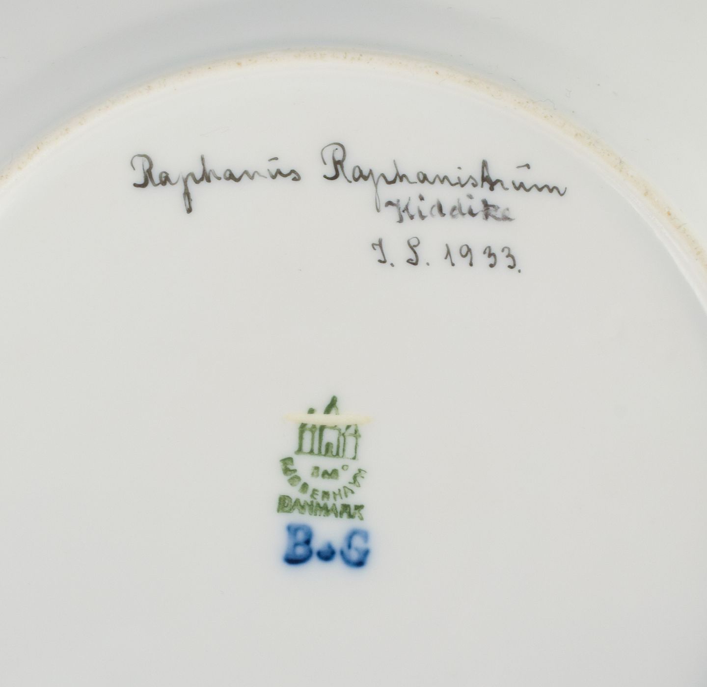 Bing og Grøndahl, fire porcelænstallerkner i Flora Danica stil med gulddekoration. Håndmalet med Flora Danica motiver. 1930’erne I flot stand. Stemplet. Anden sortering. Mål: D 21,5 cm.