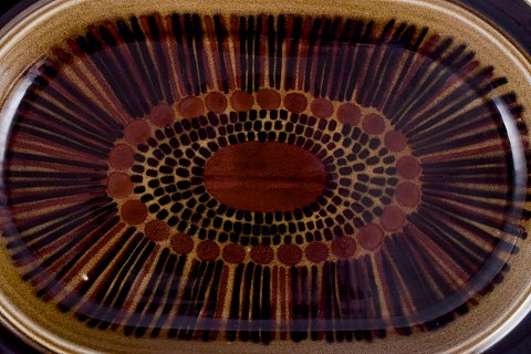 Gunvor Olin-Grönqvist for Arabia, Finland, large "Cosmos" stoneware dish in retro style. From the 1970s. Perfect condition. Marked. Dimensions: L 36.5 cm x D 24.3 cm x H 4.0 cm.