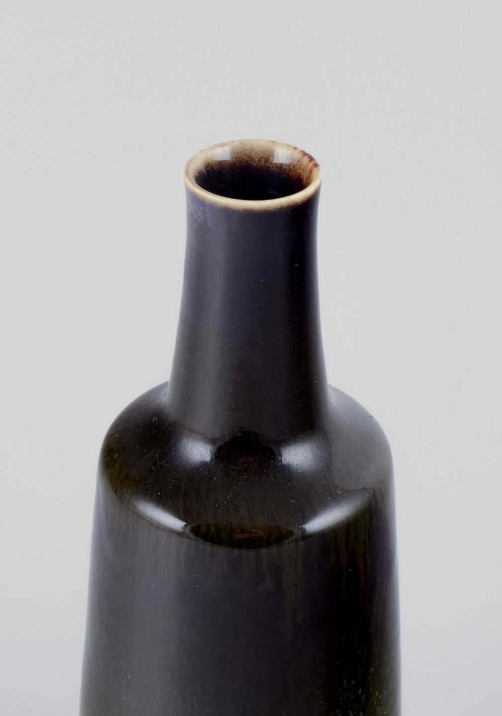 Carl Harry Stålhane for Rörstrand, flaskeformet keramikvase dekoreret i grønne nuancer. Perfekt stand. Anden sortering. Stemplet. Mål: H 22,5 cm. x D 7,5 cm.
