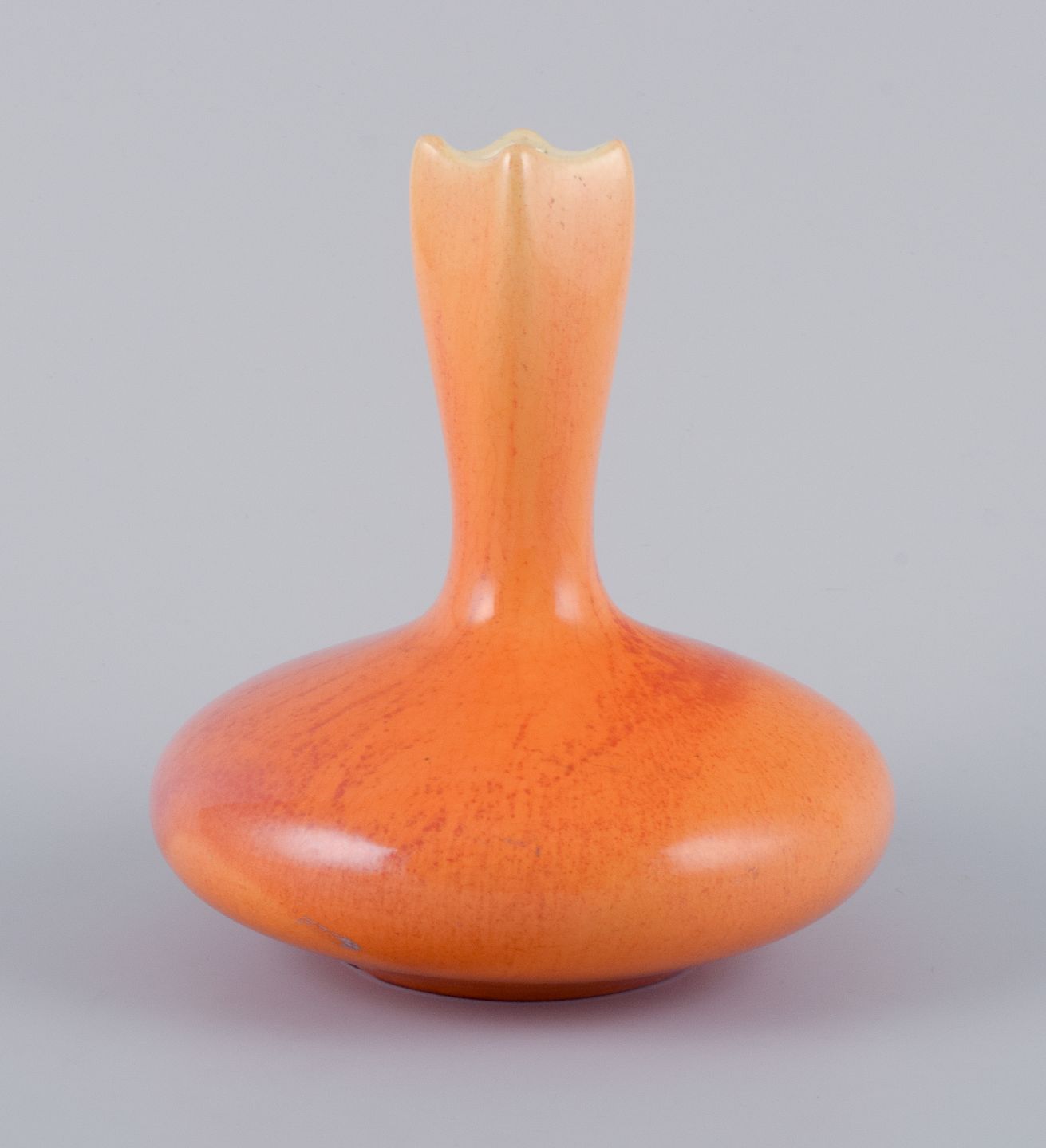Rörstrand, Sweden, faience vase with uranium yellow glaze. Early 20th century. Marked. In excellent condition. Dimensions: H 15.5 cm x D 13.2 cm.