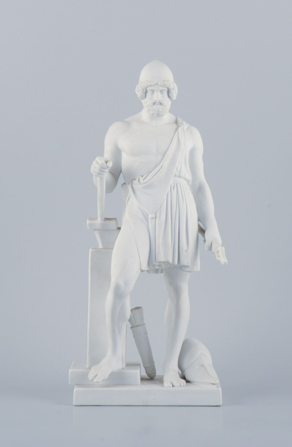 Royal Copenhagen, stor sjælden biscuit-figur forestillende Vulkan. Skabt af Bertel Thorvaldsen. Efter model modelleret i Rom 1838. 1880’erne. Første sortering. Perfekt stand. Mål: H 33,0 cm. x D 15,5 cm.