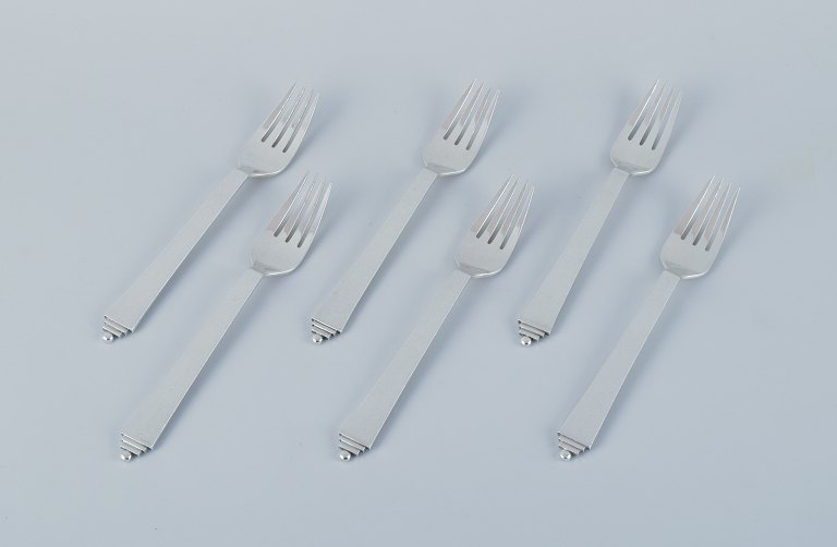 Georg Jensen Pyramid, a set of six dinner forks in sterling silver. Stamped with post-1944 hallmark. In excellent condition. Dimensions: L 18.2 cm.