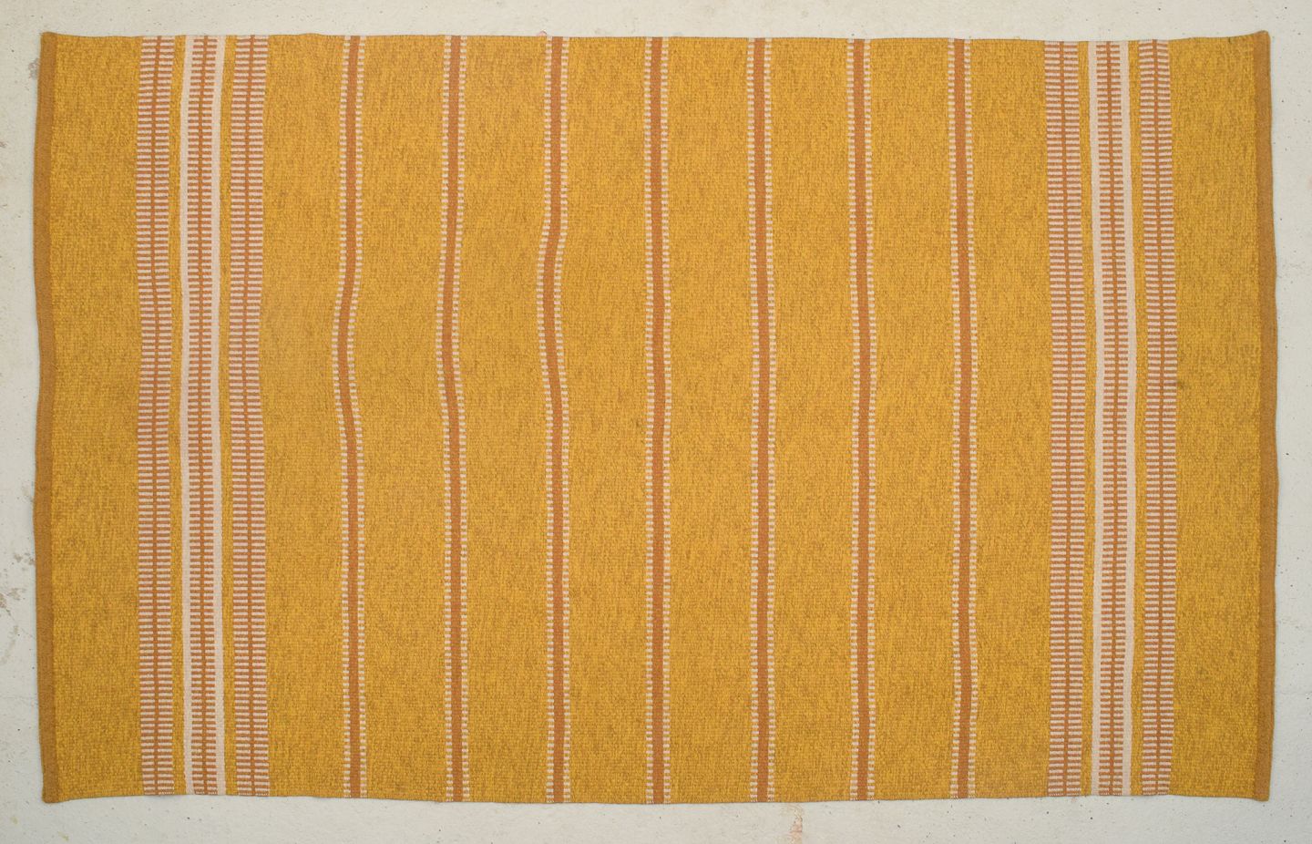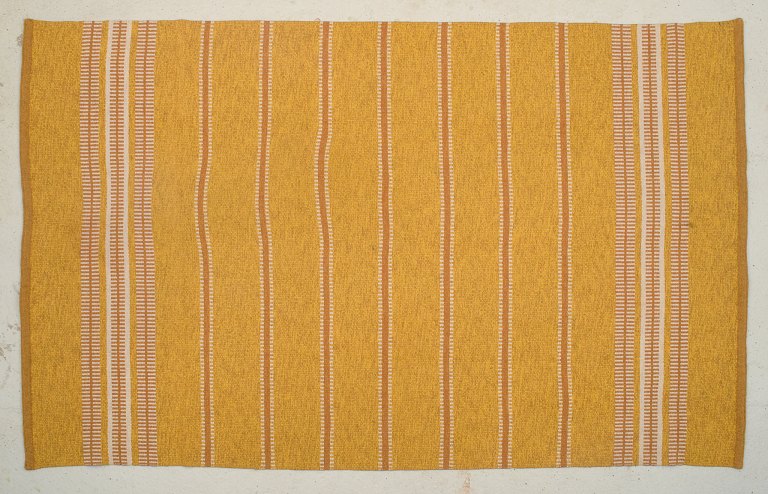 Rölakan, Sverige, stort tæppe i håndvævet uld. Okkergul. Modernistisk design. Ca. 1960. I flot stand. Mål: 232 cm. x 140 cm.