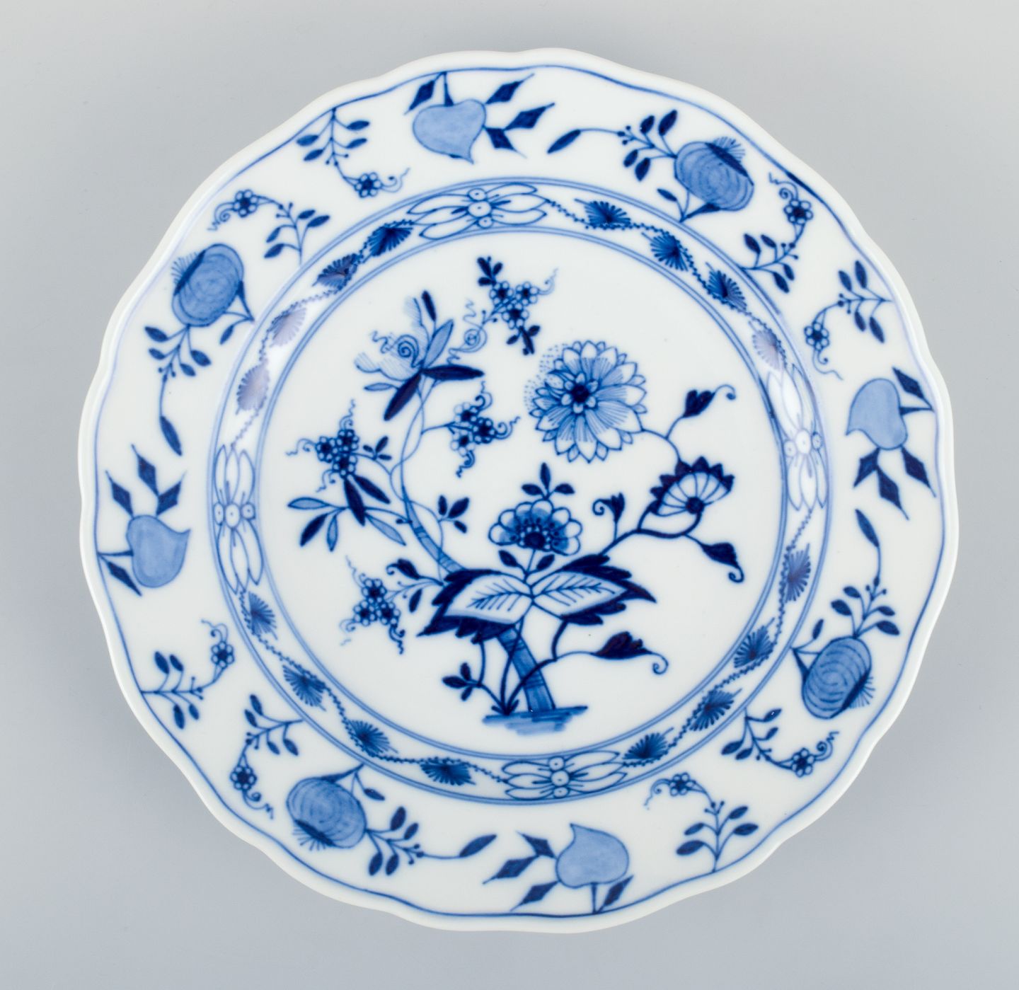 Meissen, Germany, three Blue Onion pattern plates in different sizes. Hand-painted.