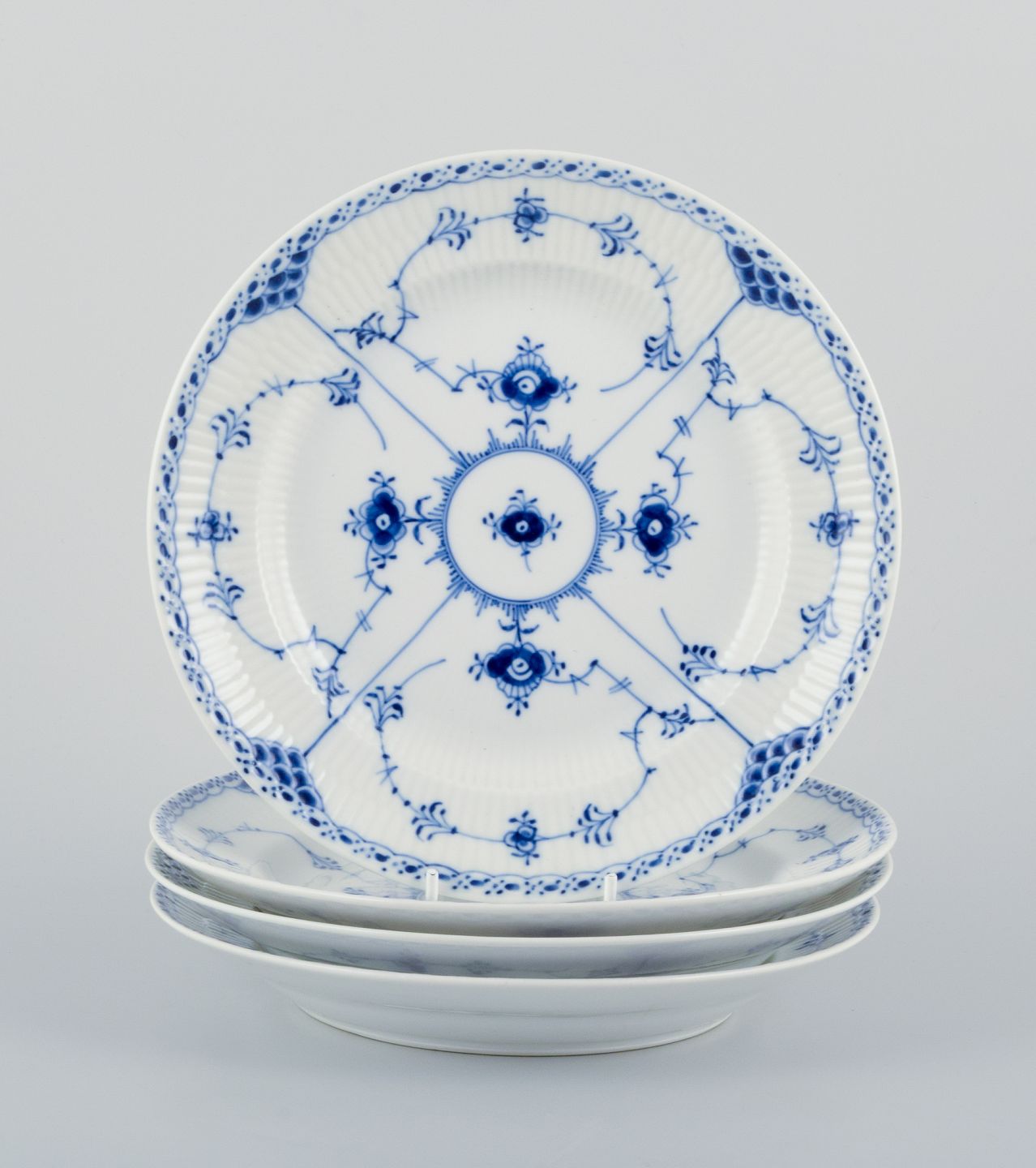 Royal Copenhagen, Musselmalet Half Lace, a set of four lunch plates.
