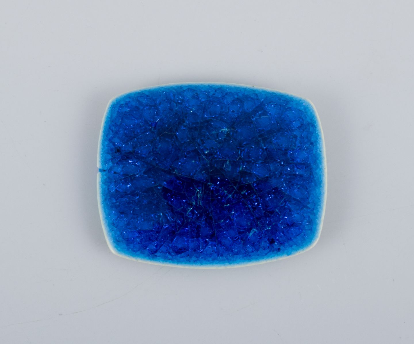 Ole Bjørn Krüger (1922-2007), dansk billedhugger og keramiker. Syv unika brocher i glaseret stentøj i blå og grønne nuancer.