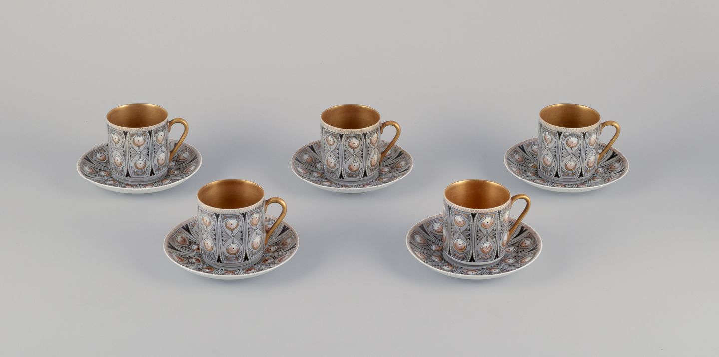 Raija Uosikkinen, Arabia, et sæt på fem ”Asta” kaffekopper med tilhørende underkopper. Hånddekoreret i modernistisk stil.