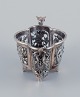 Kinesisk sølv, lille prydgenstand med drager i dekorationen. På fire fødder.