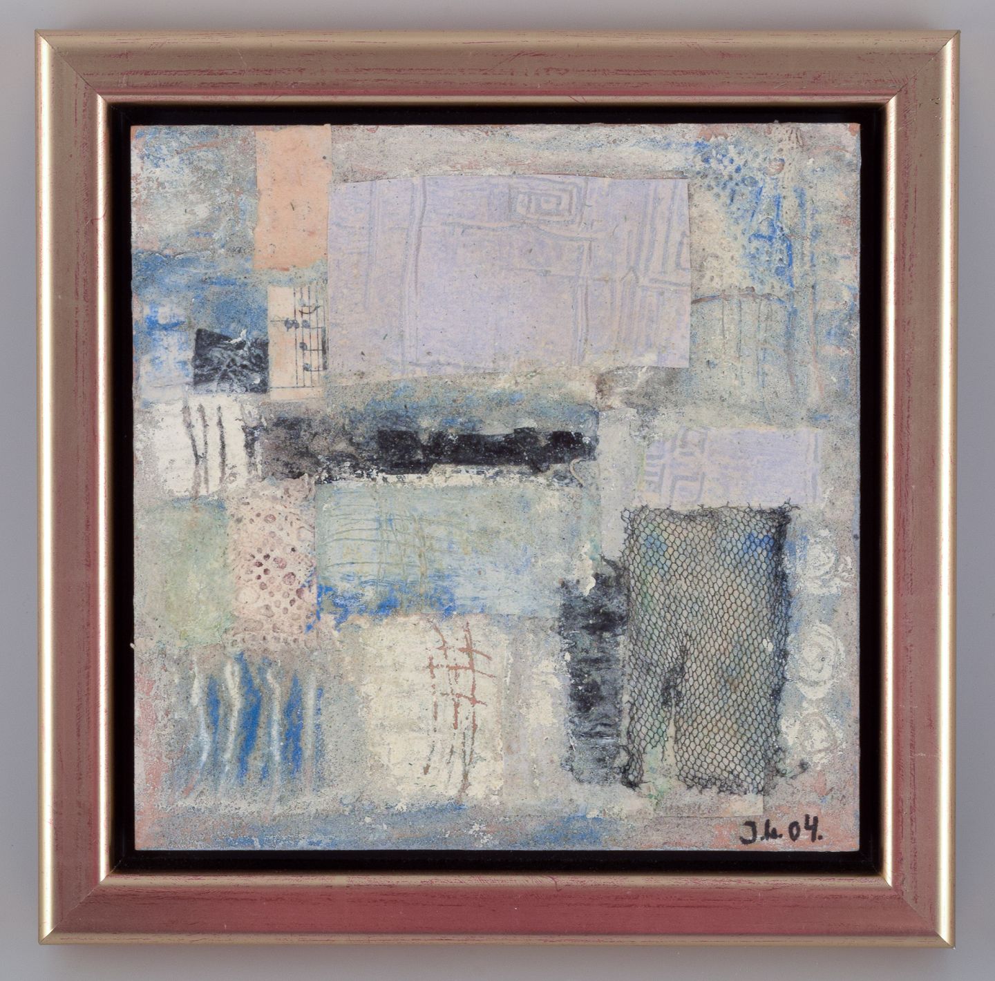 Jette Lindberg, dansk kunstner. Mixed media på plade. Abstrakt komposition. 2000-tallet. Signeret og dateret JL ’04 I perfekt stand. Mål motiv: 20 cm. x 20 cm. Totalmål: 25,0 cm. x 25,0 cm. x dybde 3,0 cm.
