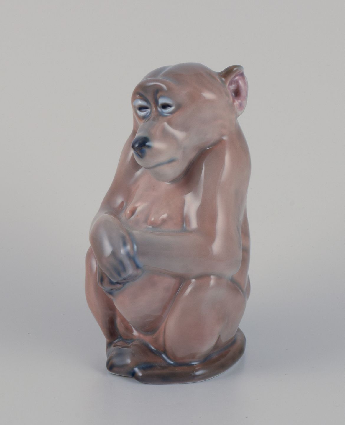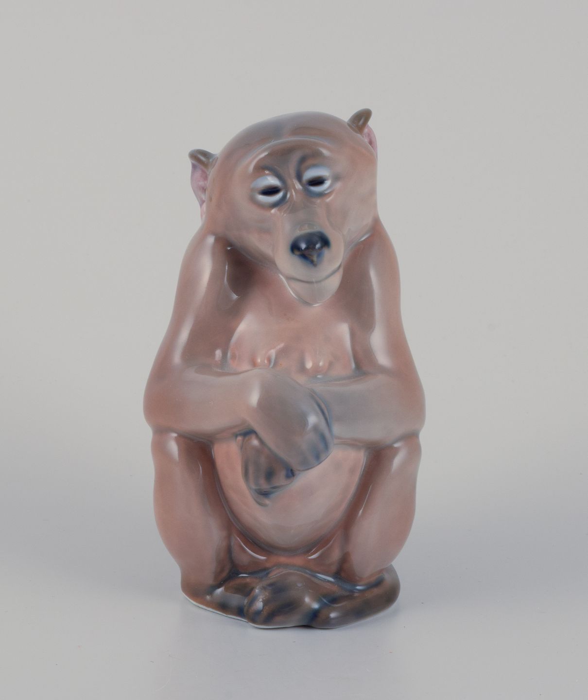 Royal Copenhagen. Porcelænsfigur af abe. Design Niels Nielsen 1913. Model: 1444 Datering: 1980-1984. 1930/40’erne. Tredje sortering. Perfekt stand. Mål: B 7,0 cm. x H 12,5 cm.