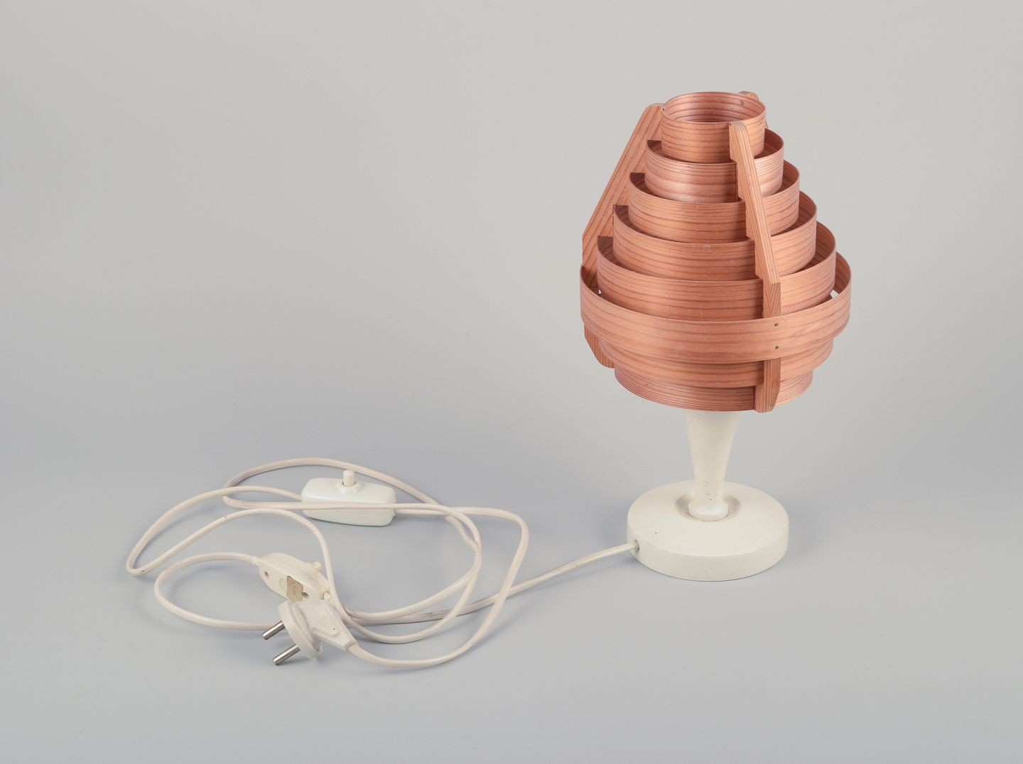 Hans Agne Jakobsson (1919-2009). Bordlampe i hvidmalet træ, skærm af træspåner.