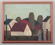 Peder Brøndum Sørensen (1931-2003), dansk maler, olie på lærred. Modernistisk bymotiv. 1970’erne Signeret PBS. I perfekt stand. Mål: 50 cm. x 40 cm. Total: 54,5 cm. x 44,5 cm.