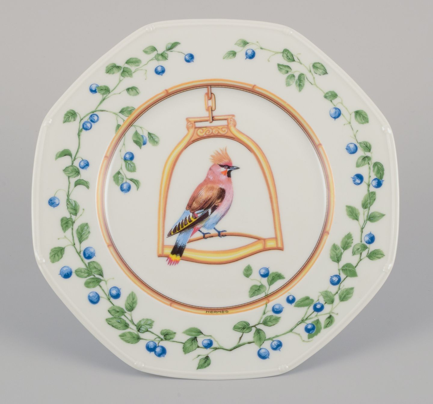 Hermès, Frankrig. To porcelænstallerkner med fuglemotiver. Fra ”L’etrier Perchoir” serien. Sent 1900-tallet. Stemplet. Perfekt stand. Mål: 21,0 cm. x 2,0 cm.