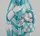 Bjørn Wiinblad (1918-2006) unik figur i keramik. "Efterår" dekoreret med grøn og rosa glasur på lysegrå base. Fra "Årstiderne".
