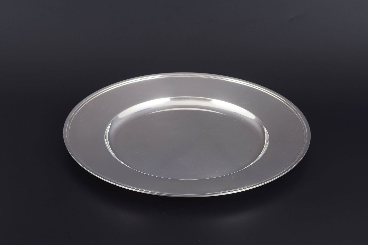 Rund dækketallerken af tretårnet sølv (830s) med enkel og elegant formgivning.