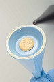 Par af kegleformede salt- og peberbøsser i glaseret fajance, i blå og sort glasur.