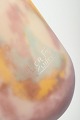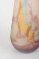 Slank, cylindrisk vase i flerfarvet opaliseret glas med marmoreret dekor i rosa, gule, blå og violette nuancer. Værket viser Muller Frères’ karakteristiske kombination af moderne formsprog og dekorative overflader.