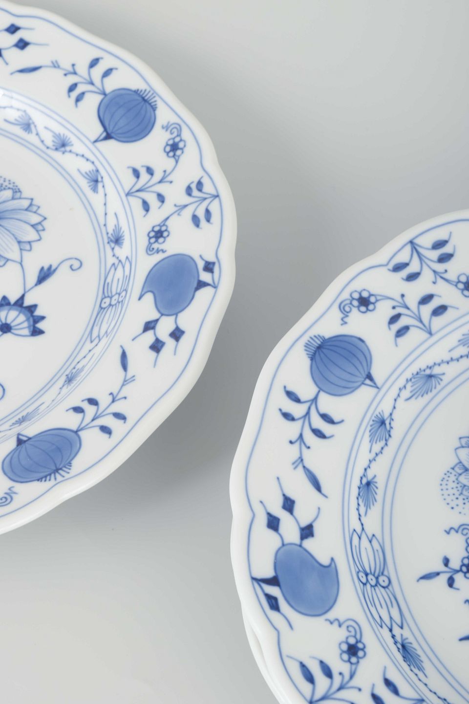 “Løgmønstret” er et af Meissens mest ikoniske mønstre, udviklet i midten af 1700-tallet og inspireret af asiatisk porcelæn. Dekorationen, der oprindeligt skulle gengive granatæbler og ferskner, blev senere opfattet som løg – deraf navnet. Serien er fortsat blandt Meissens mest populære og klassiske stel.