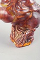 Unik, håndformet figur af fugl i glaseret stentøj med levende, flammende rød-orange glasur og kraftfuldt modelleret formsprog. Signeret med monogram under bunden.