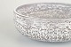 Lav, rundformet skål i stentøj med karakteristisk hvidgrå chamotte-glasur og organisk tekstureret overflade — typisk for Simmulsons 60’er-eksperimenter med taktile strukturer.