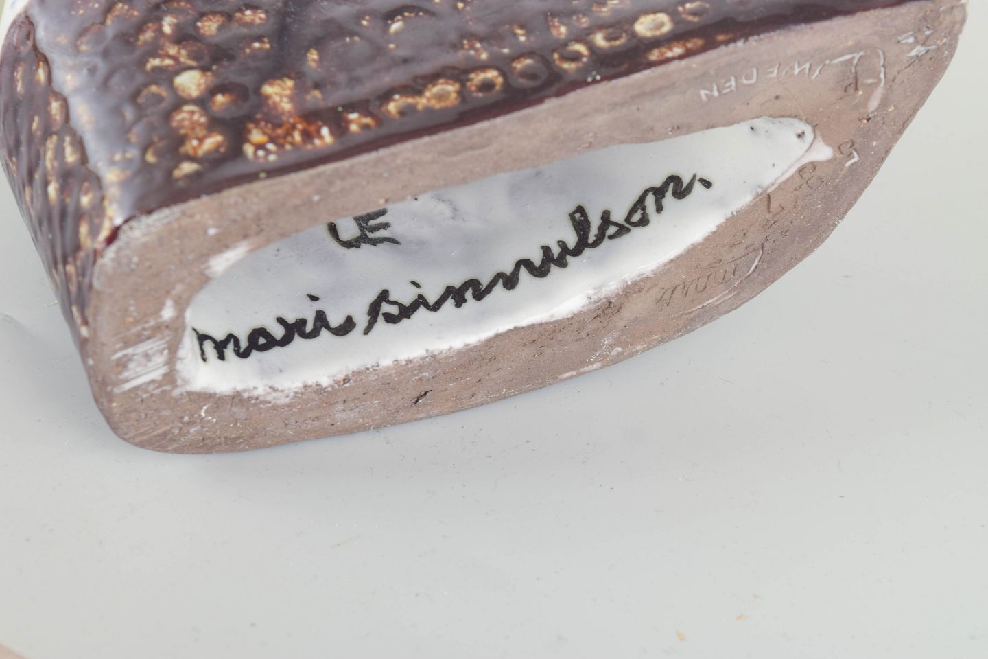 Mari Simmulson (1911–2000) var en af Upsala Ekebys mest betydningsfulde designere i 1950’erne og 60’erne. Hendes arbejder kombinerer skandinavisk modernisme med varme farver og menneskelige motiver, ofte i serier af kvinder og dyr med karakteristiske grafiske dekorationer.