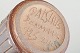 Høj cylindrisk stentøjsvase med fast konisk låg, udført i den karakteristiske brune Palshus-glasur med lodrette og vandrette relieflinjer. Et markant og elegant eksempel på værkstedets modernistiske formsprog.