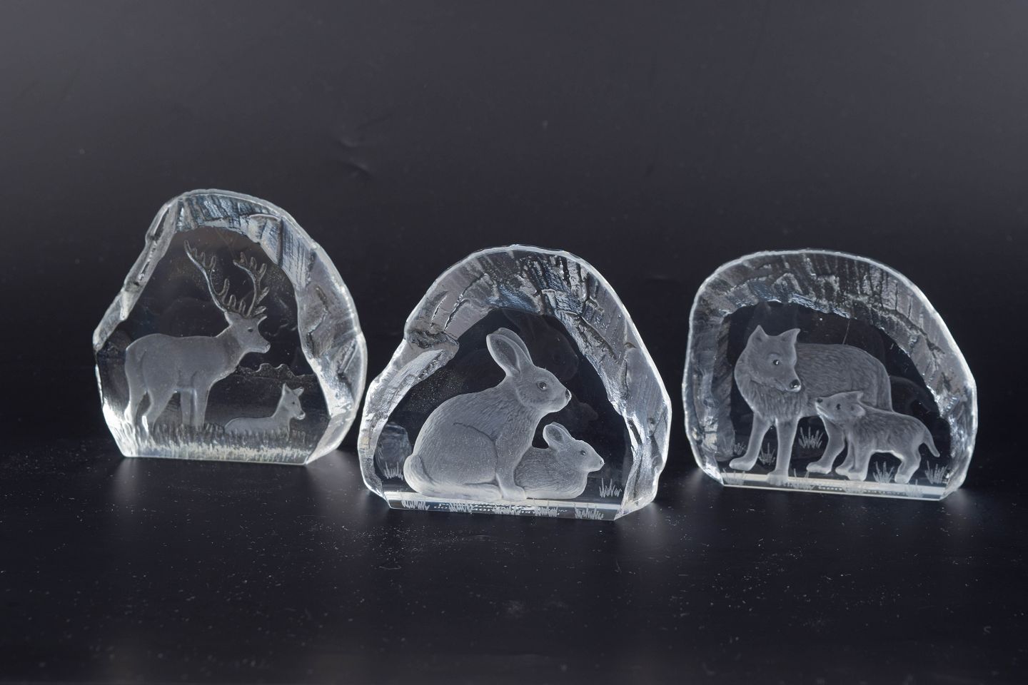 Skulpturelle glasfigurer med indgraverede dyremotiver (elg, hare og ulv), udført i klart glas og udgivet som limited edition i samarbejde med WWF.