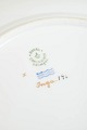 Sæt af fire store middagstallerkener i porcelæn med geometrisk dekoration i Art Deco stil langs fanen. Annulleret med to indridsede streger under bunden. Fremstillet i 1959.