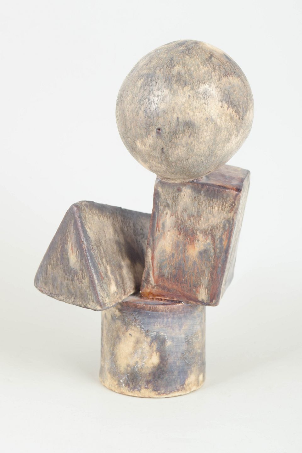 Stentøjsskulptur i kubistisk stil, med silkemat creme-grå glasur overflade.