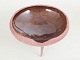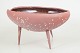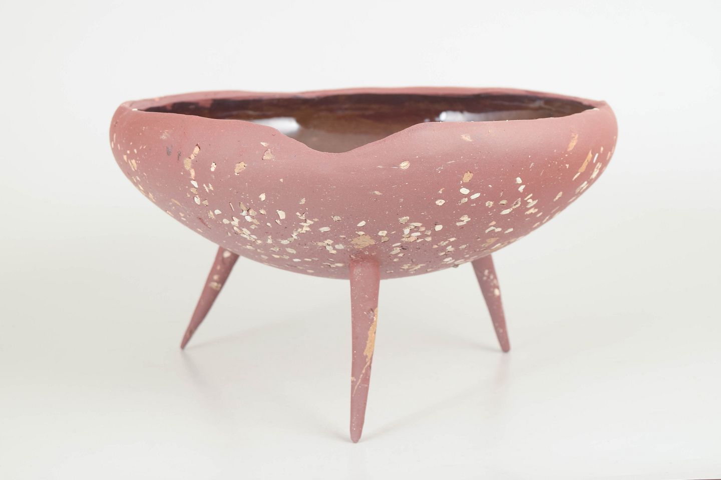 Unika Skål i rødt stentøjsler på tre spidse ben. Uglaseret på ydersiden fremstår den med det røde, varme ler som en kompliment til den mørke celadonglasur på indersiden af skålen.