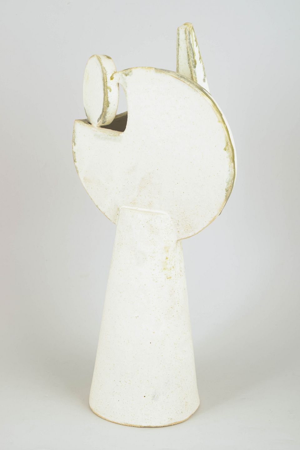 Christina Muff, dansk samtidskeramiker (f. 1971). Stort kubistisk unika ansigt med cremehvid mat glasur og farvede glasurløbere. "The art of being extravagant" from the kilnfolk series.